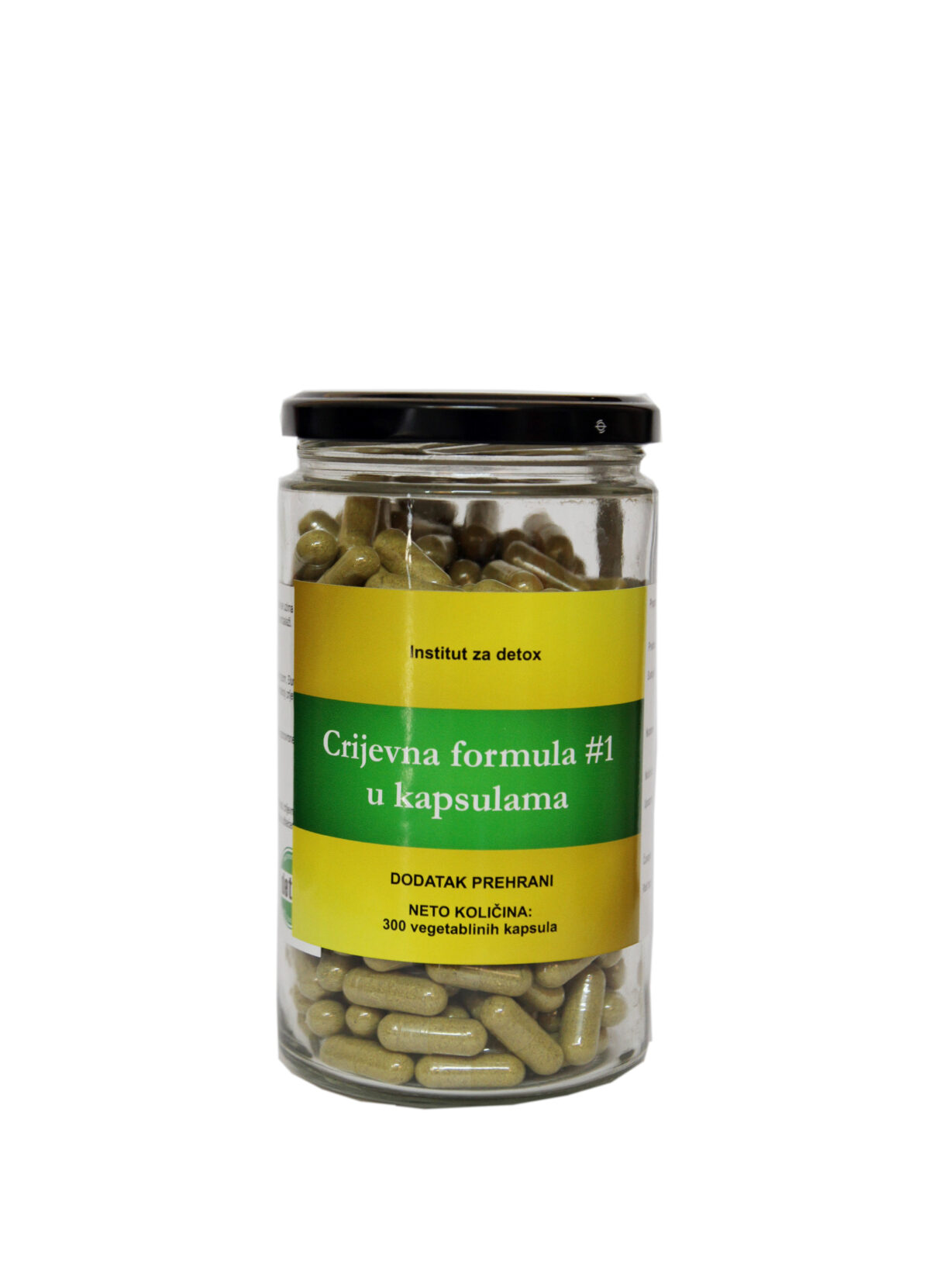 Formula br. 1 je prvi dio petodnevnog programa detoksikacije CRIJEVA. Njegova glavna dužnost je da vas oslobodi zatvora i da Vam pomogne da imate redovitije i kompletnije pražnjenje crijeva. Najbolji način za bilo koga da poboljša kvalitetu života je da periodično očisti i detoksificira svoje tijelo nataloženog otpada.Klijenti koji su napravili sezonski program detoksifikacije na redovnoj bazi su se uvijek osjećali kvalitetnije. Prije nego što možete učiniti bilo kakvu vrstu zdrave promjene načina života, morate osigurati da su SVI eliminacijski kanali otvoreni, a crijeva su mjesto gdje treba započeti. Ako prvo očistite Vaša crijeva, trebali biste se osjećati sjajno tijekom bilo kojeg detoks programa te se osjećati vitalno kada program završi.